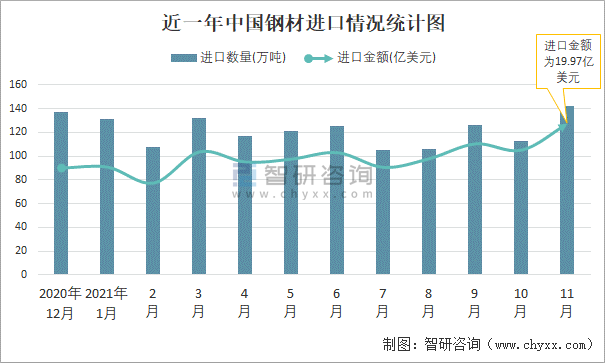 近一年中國鋼材進口情況統(tǒng)計圖