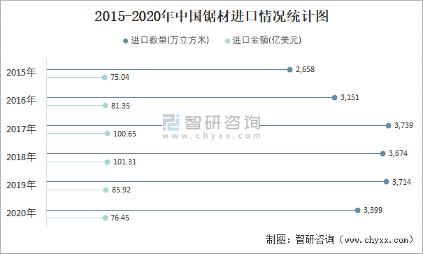 根據中國海關數據顯示:2021年11月中國鋸材進口數量為248萬立方米,同比增長1.7%,進口金額為7.41億美元,同比增長29.5%,2021年1-11月中國鋸材進口數量為2662萬立方米,進口金額為71.79億美元。