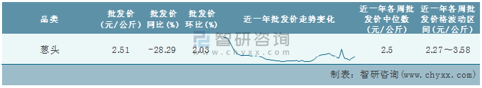 根據農村農業部數據統計可知:2022年第5周全國蔥頭平均批發價為2.51元/公斤,同比下跌28.29%,環比增加2.03%,近一年全國蔥頭平均批發價最高達到3.58元/公斤,批發價最低也要2.27元/公斤。
