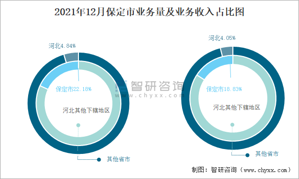 2021年12月保定市業(yè)務(wù)量及業(yè)務(wù)收入占比圖