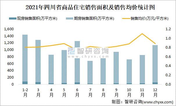 2021年四川省商品住宅銷售面積及銷售均價統(tǒng)計圖