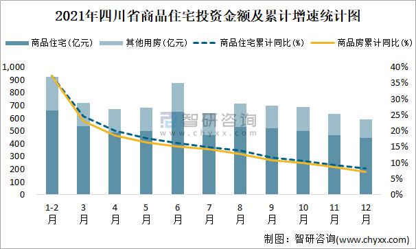 2021年四川省商品住宅投資金額及累計增速統(tǒng)計圖