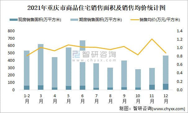 2021年重慶市商品住宅銷售面積及銷售均價統計圖