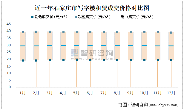 近一年石家莊市寫字樓租賃成交價格對比圖