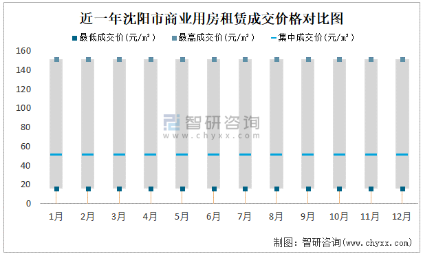 近一年沈陽市商業用房租賃成交價格對比圖