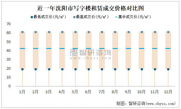 近一年沈陽市寫字樓租賃成交價格對比圖