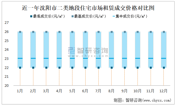 近一年沈陽市二類地段住宅市場租賃成交價格對比圖