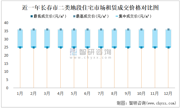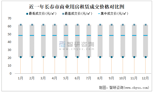 近一年長(zhǎng)春市商業(yè)用房租賃成交價(jià)格對(duì)比圖