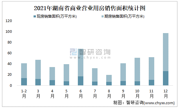 根據國家統計局數據可知:2021年湖南省商業營業用房銷售面積為523.23萬平方米(其中銷售現房125.97萬平方米,銷售期房397.26萬平方米),2021年12月湖南省商業營業用房銷售面積為96.96萬平方米;2021年湖南省商業營業用房期房銷售面積遠高于現房銷售面積。