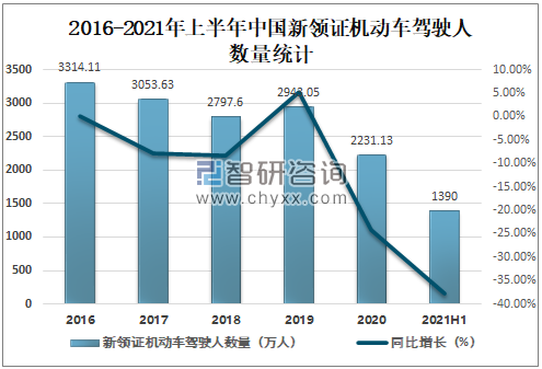 2016-2021年上半年中國新領(lǐng)證機(jī)動(dòng)車駕駛?cè)藬?shù)量統(tǒng)計(jì)