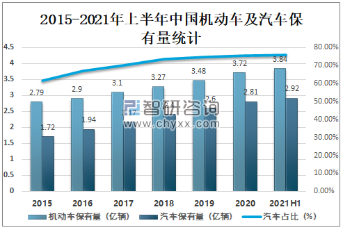2015-2021年上半年中國機(jī)動(dòng)車及汽車保有量統(tǒng)計(jì)