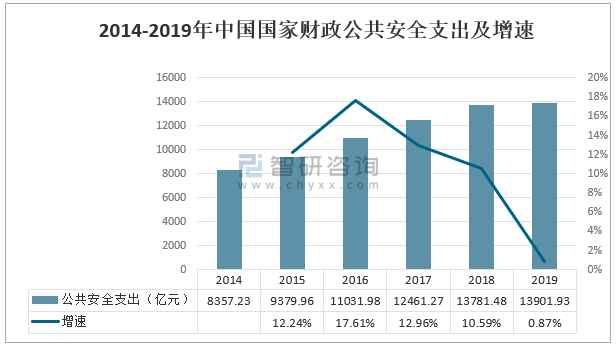 2014-2019年中國國家財政公共安全支出及增速