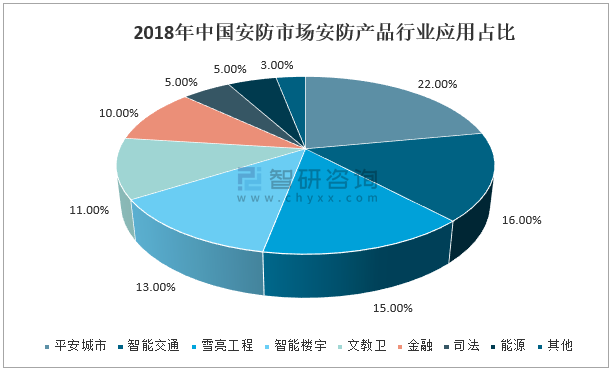 2018年中國安防市場安防產品行業應用占比