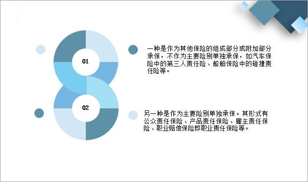 責任保險與一般財產保險相比較,其共同點是均以大數法則為數理基礎,經營原則一致,經營方式相近(除部分法定險種外),均是對被保險人經濟利益損失進行補償。