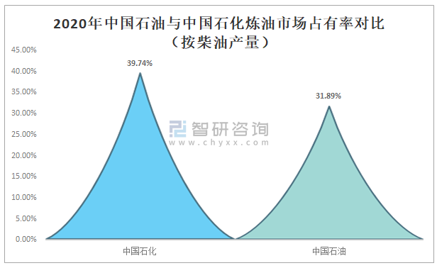 2020年中國石油與中國石化煉油市場占有率對比(按柴油產量)