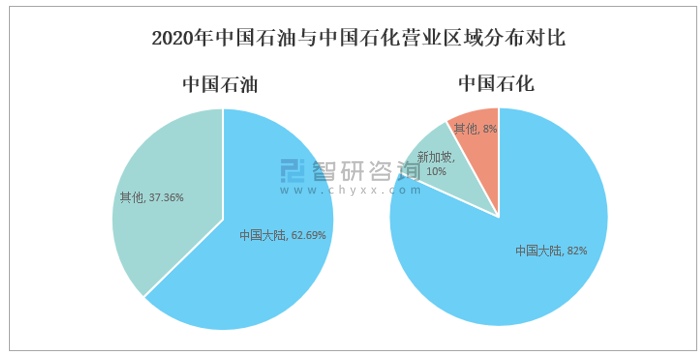 2020年中國石油與中國石化營業區域分布對比