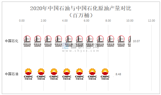 2020年中國石油與中國石化原油產量對比