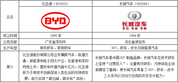 二、企業對比:比亞迪VS長城汽車