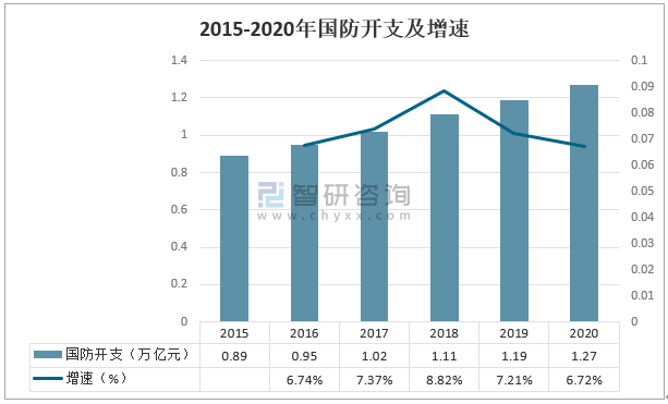 近年來,隨著GDP增速逐漸趨緩,我國的國防投入的增速也逐漸趨于穩定。2020年,我國GDP為101.6萬億元,較上年增加2.51萬億元,國防投入占GDP的比重為1.25%;我國國防支出占GDP的比重也遠不如其他國家的水平,我國的國防支出有著充足的提升空間。