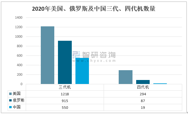 從代際結構來看,美國三代機1218架,俄羅斯三代機915架,中國三代機550架;美國四代機294架,俄羅斯四代機87架,中國四代機僅有19架,對比美國的近300架四代機機隊規模,仍有很大的提升空間。