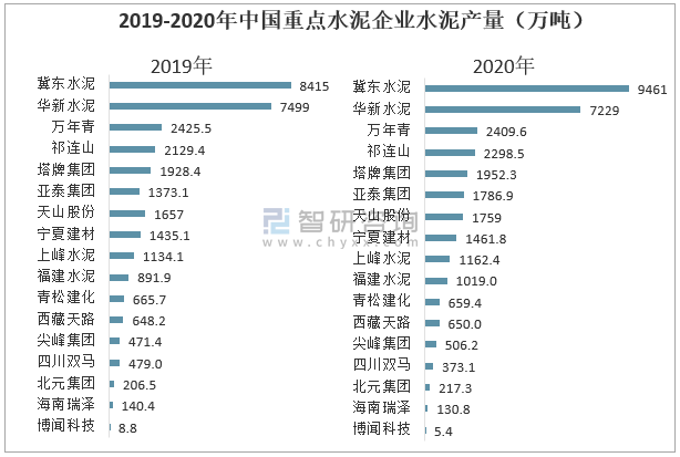 2019-2020年中國重點水泥企業(yè)水泥產量