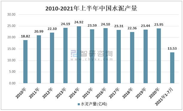 2010-2021年上半年中國水泥產量