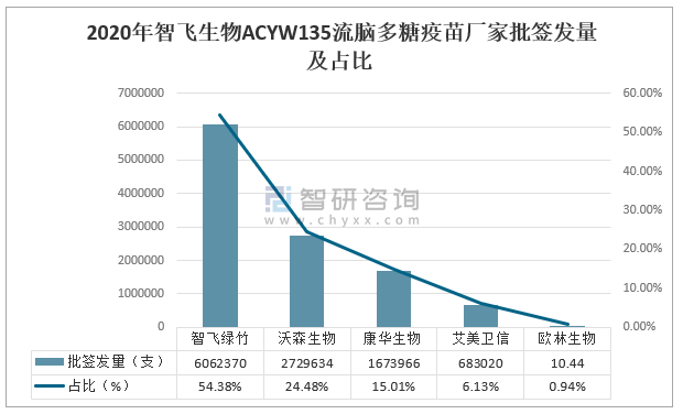 2020年智飛生物ACYW135流腦多糖疫苗廠家批簽發量及占比