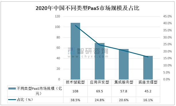 2020年中國不同類型PaaS市場規模及占比