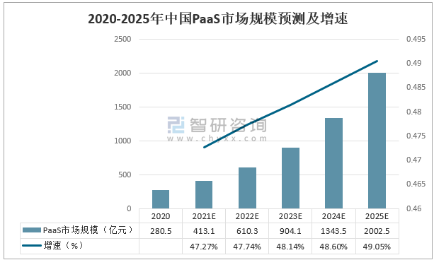 2020-2025年中國PaaS市場規模預測及增速