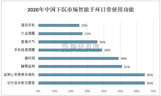 2020年中國下沉市場智能手環日常使用功能