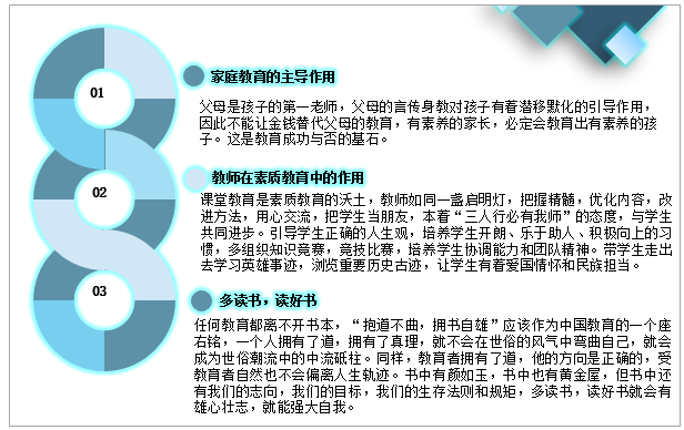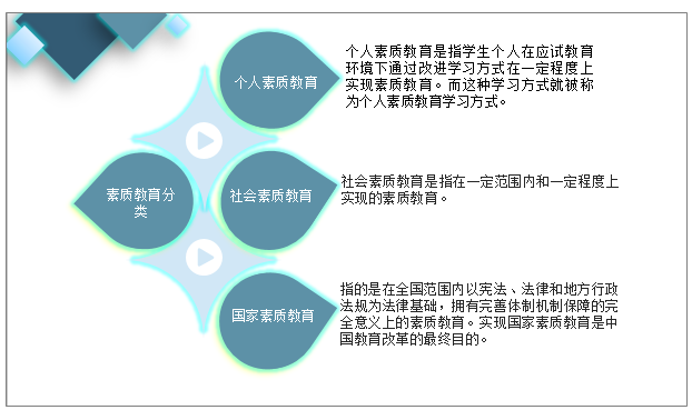 按素質教育的實現范圍來分,中國素質教育主要分為個人、社會、國家三個層面。