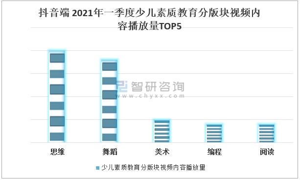 抖音端2021年一季度少兒素質教育分版塊視頻內容播放量TOP5