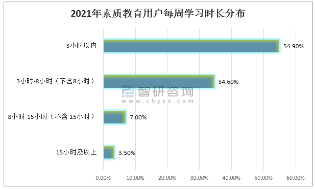 2021年素質教育用戶每周學習時長分布