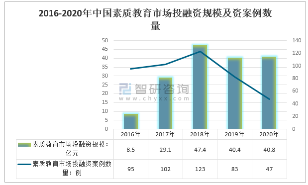 2016-2020年中國素質教育市場投融資規模及資案例數量