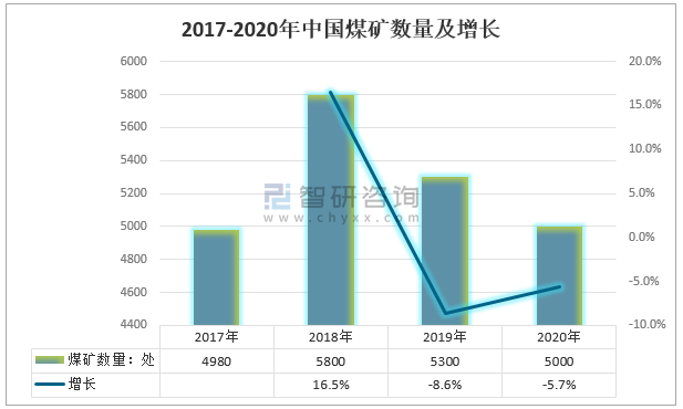 智研咨詢發(fā)布的《2021-2027年中國煤礦行業(yè)市場全景調(diào)查及發(fā)展趨勢研究報告》顯示:中華人民共和國成立以來,我國煤礦數(shù)量已由最多時有9萬多處。截至2020年底,全國超額完成國務(wù)院提出的化解煤炭過剩產(chǎn)能的目標(biāo),2020年底,全國煤礦數(shù)量減少在5000處以內(nèi),較2019年減少300處。