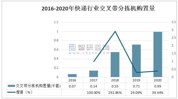 2016-2020年快遞行業交叉帶分揀機購置量