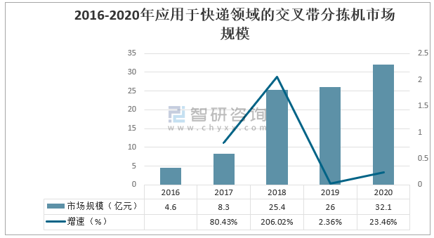 2016-2023年應用于快遞領域的交叉帶分揀機市場規模