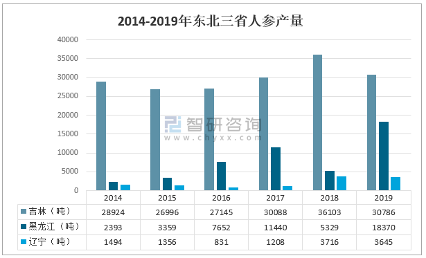 2014-2019年東北三省人參產量
