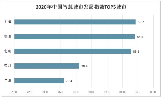 2020年中國智慧城市發(fā)展指數(shù)TOP5城市
