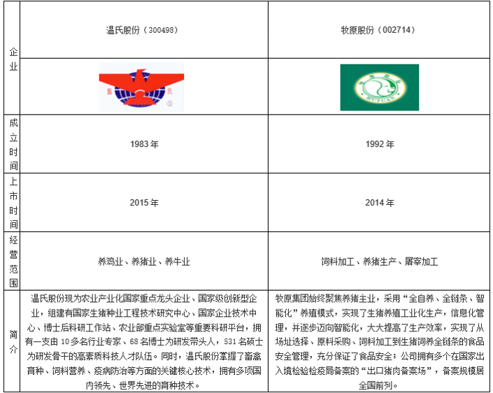 從銷售量來看,溫氏股份銷售肉豬954萬頭(含毛豬和鮮品),較上年減少897萬頭;牧原股份銷售生豬1811萬頭,較上年增加786萬頭,其中商品豬1152萬頭(其中向全資子公司牧原肉食品有限公司銷售23.9萬頭),仔豬595萬頭,種豬64萬頭。