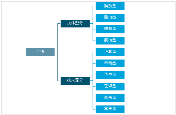 生豬的類型缺乏統一的劃分標準,通常是根據體型結構和主要用途分為脂肪型、腌肉型、鮮肉型或瘦肉型;中國地方豬種根據其來源、分布、體質、外形和生產性能可劃分為華北型、華南型、華中型、江海型、西南型和高原型六個類型。
