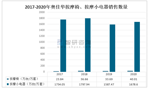 2017-2020年奧佳華按摩椅、按摩小電器銷售數量