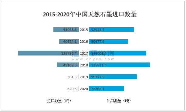 2015-2020年中國天然石墨進口數量