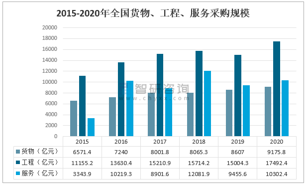 2015-2020年全國(guó)貨物、工程、服務(wù)采購(gòu)規(guī)模