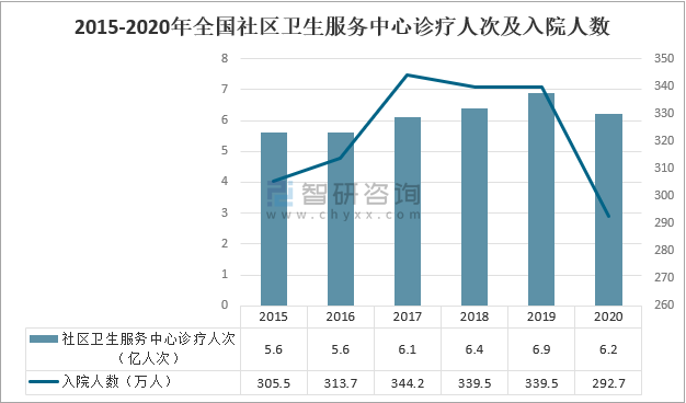 隨著我國社區(qū)衛(wèi)生服務(wù)事業(yè)的不斷發(fā)展,構(gòu)建以全面的社區(qū)衛(wèi)生服務(wù)為基礎(chǔ)、預(yù)防保健機(jī)構(gòu)合理分工、協(xié)作密切的新型的城市衛(wèi)生服務(wù)體系,已經(jīng)成為社區(qū)衛(wèi)生服務(wù)中心的必然發(fā)展趨勢。2020年,全國社區(qū)衛(wèi)生服務(wù)中心診療人次6.2億人次,比上年減少0.7億人次;社區(qū)衛(wèi)生服務(wù)中心入院人數(shù)292.7萬人,比上年減少46.8萬人。