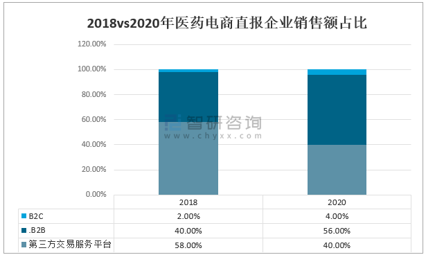 2018 vs.2020年醫(yī)藥電商直報企業(yè)銷售額占比