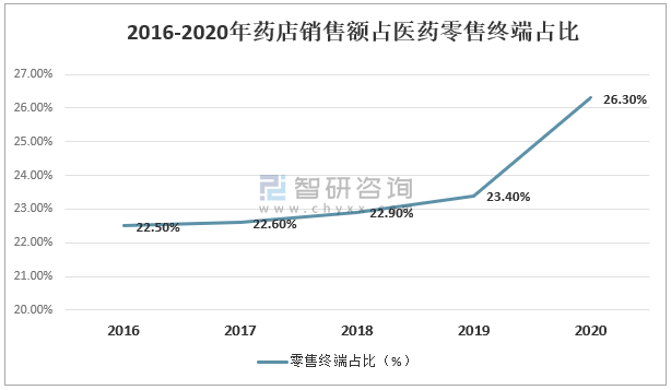 2016-2020年醫(yī)藥終端銷售額占比趨勢
