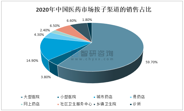 2020年中國醫(yī)藥市場按子渠道的銷售占比