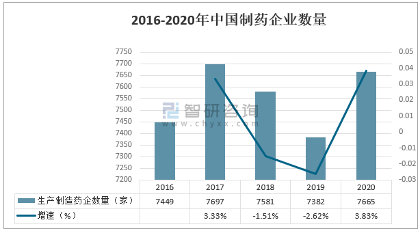 2016-2020年中國制藥企業(yè)數(shù)量