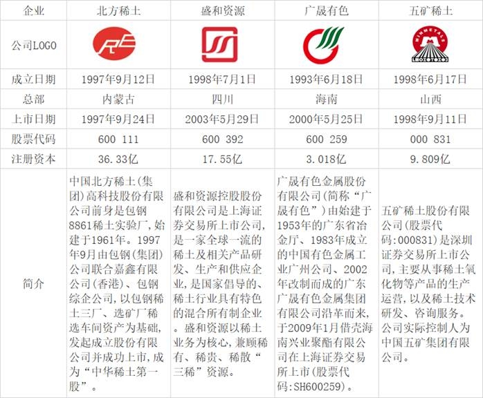 北方稀土、盛和資源、廣晟有色、五礦稀土基本情況對比